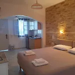 Součástí vybavení kuchyně je rychlovarná konvice, chladnička a kuchyňské nádobí. Apartmán je 5 minut jízdy od letiště Mykonos.
